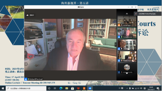 On the evening of April 17, 2021, the academic lecture on climate change in the courts in the fifth lecture court of "New Horizons Overseas" of Civil, Commercial and Economic Law School, China University of Political Science and Law (CUPL) went smoothly through Tencent Meeting.