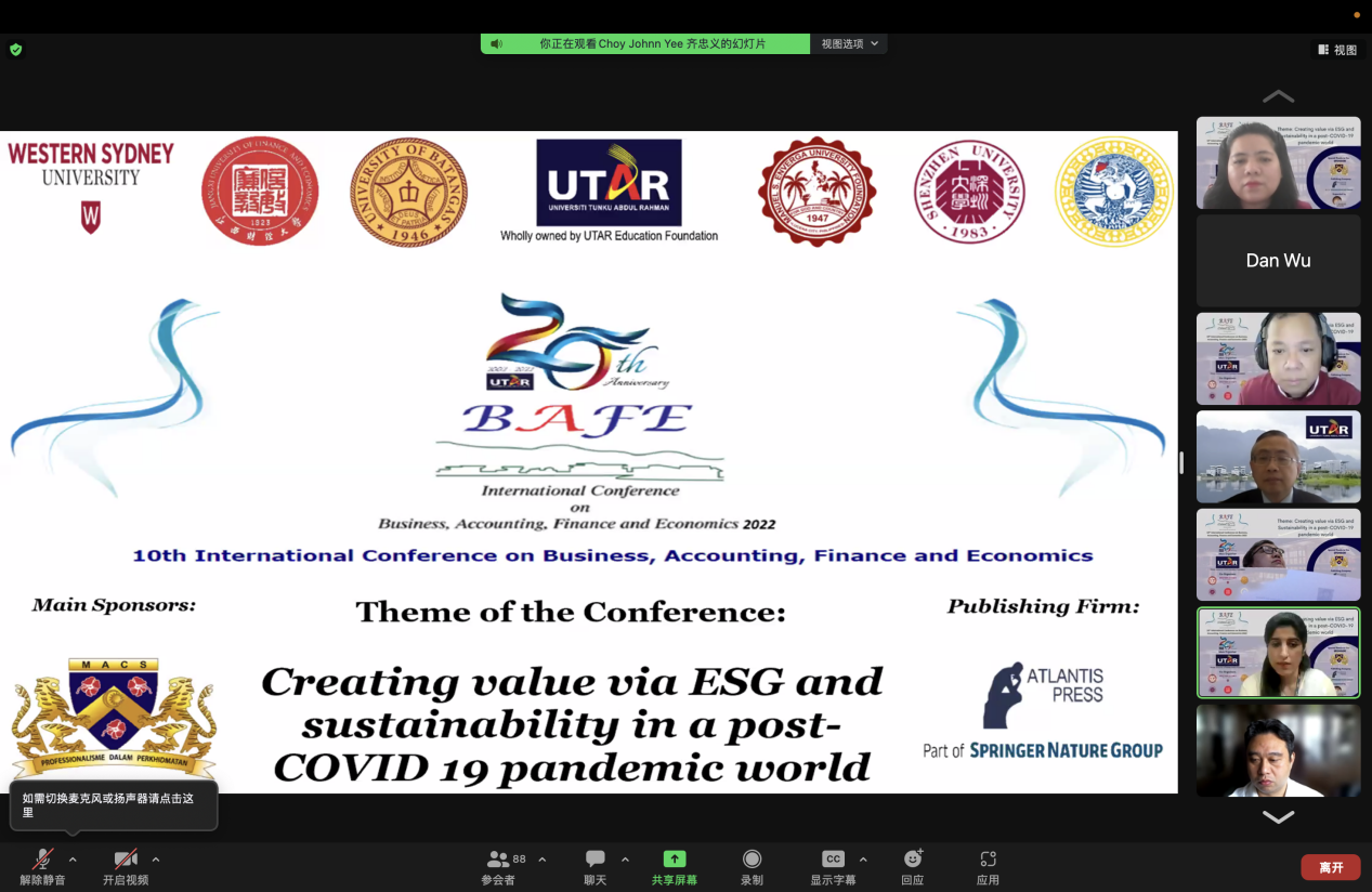 2022年10月11日,马来西亚拉曼大学第十届商务、会计、金融与经济国际会议在线上举行。本届会议的主办方为马来西亚拉曼大学,会议主题为“在后疫情时代通过环境、社会和公司治理与可持续发展创造价值”。黑料网