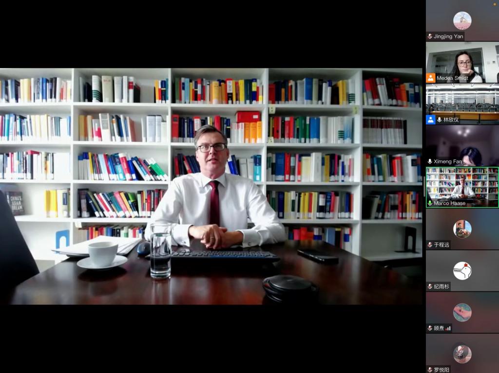 与德国国际合作机构(GIZ)中德法律合作项目再次携手,合作开设“民法请求权基础案例研习”课程。受疫情影响,本次课程以线上授课方式举办。课程由三位德国专家联袂主讲,分别是:GIZ中德法律合作项目主任Marco Haase(汉马可)博士,项目法律顾问、前法官、前检察官Norbert Feige(费舸)先生和项目法律顾问Medea Smidt(史蜜迪)女士。