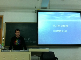 2009级本科生七个党支部于3月20日至3月30日分别开展了学习“两会”精神活动,活动由各党支部书记主持,党员同学和积极分子均参加了此次学习活动。