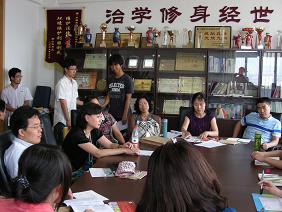 6月24日下午,活动如期举行。到会的党员教师和非党员教师与学生代表约30人,围坐在会议桌四周,气氛十分融洽。经济法研究所党支部书记孙虹老师主持会议,她首先说明了活动的意义和具体步骤;然后主要由学生们发言。07级的同学率先谈了他们学习中的一些想法和困惑;08级的同学结合自己学习和生活中遇到的问题,向老师们求教。老师们根据自己的专业特长和人生经验,认真做了回答。对郑俊果老师、霍玉芬老师、徐晓松老师、李东方老师、薛克鹏老师的解答和发挥,使学生们感到受益非浅,会议室里一次次响起会意的掌声。几乎每一个同学在发言前都表示,这样近距离的与这么多老师坐在一起谈心交流还是第一次,这种方式对他们的成长十分有益,希望今后有更多类似的机会。会议进行了两个小时,大家意犹未尽。最后支部书记孙虹老师做了简短的总结。她表示感谢同学们的信任,感谢大家在紧张的复习考试阶段积极参加该活动。并表示,支部活动要贴近老师和同学,既然同学们需要与老师们沟通,喜欢这种近距离交流的方式,经济法支部将定期举行这类活动,满足同学们的愿望和需求。会后,一些同学没有马上离开,继续与个别老师进行了一对一的交谈。