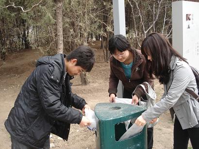 2009级本科生党支部开展了“环保生活从我做起”活动,党支部成员在昌平公园义务清洁卫生,并向公园游客介绍环保知识。