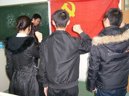 各班发展党员会议的最后都举行了宣誓仪式,在鲜艳的党旗下跟随正式党员宣读入党誓词,许多党员同学纷纷表示深受触动,接受了一次爱党教育,增强了集体荣誉感和党员的使命感。