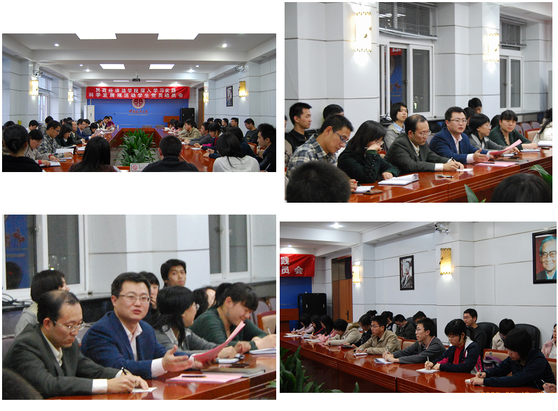 学生党员的具体情况,王洪松又指出如何进一步加强学生党支部的建设,如何进一步增强学生党员的党性意识,如何进一步调动广大学生党员的积极性、主动性和创造性,推动学习实践科学发展观活动的开展,使我们现存的主要问题。最后,王洪松强调,在本次学习实践科学发展观活动中,各学生党支部在学习过程中要加大宣传力度,努力营造良好的学习实践氛围。宣传科学发展观内容,宣传学校、学院的实施方案,宣传各支部在学习实践科学发展观活动中的典型事迹、典型人物;要求各支部严格落实实施方案中“做到四个一”的要求开展学习实践活动;要求兼职组织员加强对学生党支部学习实践活动的指导;要求各党支部在学习时间活动中注意互相交流,相互介绍学习实践经验,并做好成果展示工作。