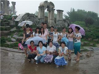 在知识竞赛结束后,两支部组织开展了党旗接力活动,这时,天空下起了蒙蒙细雨,旋即愈演愈烈,大雨倾盆。但同志们不为所动,依然积极、踊跃地参加活动。党旗接力的最后一站是圆明园的大水法遗址。在大水法遗址下,同志们感慨民族的伤痛与历史的哀伤,纷纷踊跃发言,表示一定不忘历史,不忘国耻,勤奋学习,努力提高丰富自己,为中华民族在本世纪的伟大复兴做出自己应有的贡献,党旗接力活动由此进入高潮。