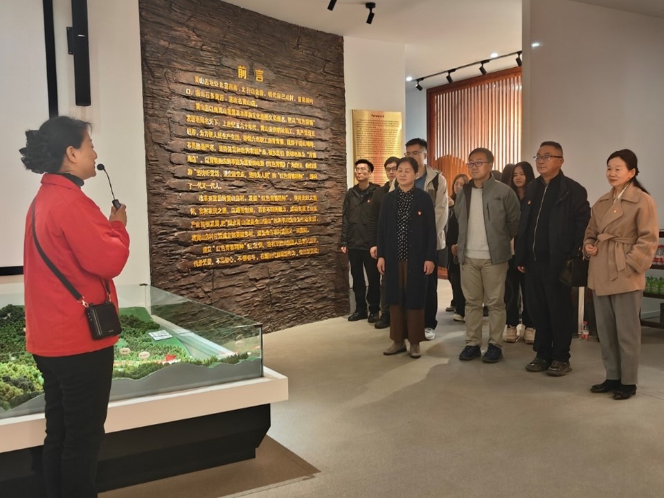 观影结束后,同志们在讲解员的带领下参观了红色背篓精神纪念馆,沿着《红色记忆》《红色传承》《红色使命》《美好愿景》四个板块,回顾红色背篓精神的诞生过程以及黄山店村党组织弘扬红色背篓精神引领产业转型、克服困难实现创新发展的奋斗历程。