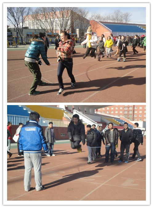 2011级开展了“唤醒寒冬”系列冬季活力运动活动之一的年级跳长绳比赛。比赛历时两天,以班级为单位、以5分钟内集体跳长绳次数最多的班级获胜。各班同学在班长团支书的号召下,纷纷主动试跳练习,摩拳擦掌,跃跃欲试,一个个在穿着厚重,却在寒风中跳得轻盈,偶尔有同学被绳绊住,也毫不气馁,在大家鼓励下几经尝试最后成功跃过,操场的百米跑道上熙熙攘攘的人群里不时传出一阵阵喝彩声。