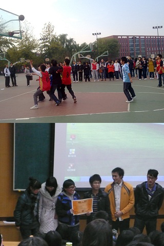 能文能武方是豪杰。在总结了前段时间的篮球比赛后,大会进入到总结上学年成绩的环节。团总支的学习委员做了精心的准备,伴随着内容充实,美观大方的ppt,总结了上学年我们2010级的整体学习情况,其中包括各班获得奖学金的人数、奖项、男女比例、各班平均分的排名等等,数据详实,图表清晰。最后,还进行了本年级各班创新项目申报情况的总结。有比较才会发现差距,这次的总结对大多数同学都有触动,激发出大家更加努力的尽头。