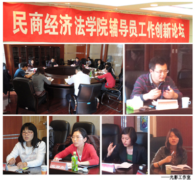 在学生活动中心三楼306会议室举办了第六期辅导员工作创新论坛。本次论坛由2009级辅导员蒋龙琴组织、策划并主持,学院分党委副书记兼副院长王洪松、全体辅导员参加论坛。