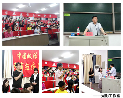 在同学们的掌声中,王院长正式开始了2011届毕业生“大学最后一堂课”的讲授。整场讲座,王院长紧紧围绕“法学教育”与同学们展开论述,充分阐释了“法科学生的社会使命”和“中国法治的未来的希望”,同时也为毕业生送上了离别箴言。