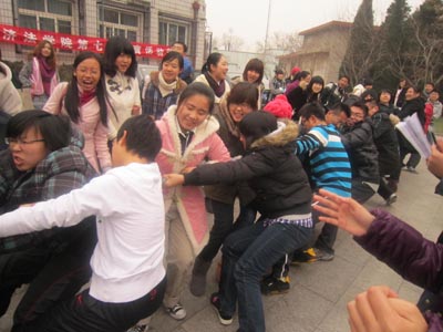 12月1日,体育活动节拉开帷幕,当天举行了混合接力赛、点球大赛和拔河比赛三个比赛项目。在男女混合接力赛中,运动员像离弦的箭一样冲出起跑线,紧张激烈的追逐拉开了序幕。经过各队队员的默契合作和全力以赴,接力赛以大二同学的胜利而结束,现场的气氛也在同学们的放声呐喊中趋向白热化。在点球大战中,各年级男女同学纷纷上阵,守门员专业的技术和运动员漂亮的进球都带给了现场数不尽的掌声与欢笑。现场掀起阵阵高潮,全场气氛热烈温馨。最后进行的是紧张激烈的拔河比赛,经过两轮对抗,大三大四最终拼入决赛。冬日的寒风丝毫没有影响大家的热情,体育馆前加油声、喊号声响彻云霄,气氛热闹非凡,成为冬日的午后别样的风景,最终大四年级赢得了胜利。