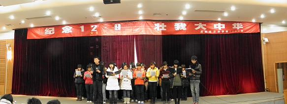 2009级学生在昌平校区学术报告厅举行了“纪念12·9,壮我大中华”诗歌朗诵比赛。学术导师兼任班主任朱晓娟、年级辅导员蒋龙琴和2009级全体同学参加了本次活动。