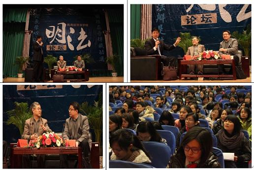 附:明法论坛(讲座)是民商经济分党委自2006年起全心全意为法大学子打造的学术盛宴,是学院“激励与扶助相结合”特色学风建设系统的重要组成部分。论坛以“明理在手律识功过浩气萦心法辩是非”为宗旨,每期以时政事件和法律问题为聚焦点,聘请有较高学术造诣、社会声望的法学专家学者和知名律师等同学倾心奉献,至今已成功举办十余期,参加人次近万人。明法论坛为培养研究型学术性人才提供一种课堂之外、以学生为主体、嘉宾为引导者的全新方式,达到了引导帮扶的目标。同学们不仅收获了学习的方法,更收获了学习的精神,也能更自觉地投入到法学学习的浩瀚海洋中。