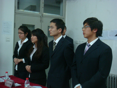 对阵外国语学院,担任评委的老师有:刑事司法学院郭金霞、商学院刘慧敏以及社会学院何珊君。