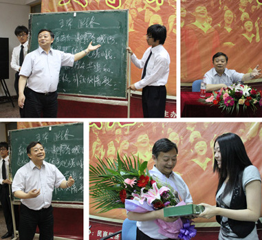 活动首先进行了第四届民商读书会的颁奖仪式。王院长依次为获奖者颁发了荣誉证书,本届读书会的特等奖也由2010届学生开展了四年的“民法读书小组”获得,王院长与他们合影留念并鼓励他们走出校门走进社会后要继续读书修身,第四届民商读书会圆满落幕。