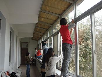 下午1时,同学们来到爱地敬老院,没有片刻的休息,同学们立即开始行动,帮助敬老院的老人们解决他们的实际困难。男生首先帮助老人将楼上的花盆抬到院子里,女生则帮助敬老院员工擦玻璃。紧接着,男生又帮助院长清扫落叶,将园区打扫的干干净净。在随后的交流中,同学们与敬老院中的郝爷爷亲切交谈,互相交流彼此的意见和看法,郝爷爷勉励我们要努力学习,而同学们则纷纷祝愿郝爷爷身体健康。最后,参与本次活动的人员在园区门口合影留念,活动圆满结束。