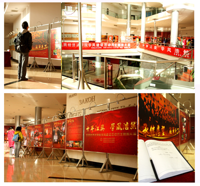 主办的学风建设活动月“江奖十年,学风浩然”主题图片展在法渊阁图书馆二楼拉开帷幕,一幅幅主题鲜明、精心设计、图文并茂的展板精美绽放,化为一道靓丽的风景线,吸引着众多法大师生驻足观看。