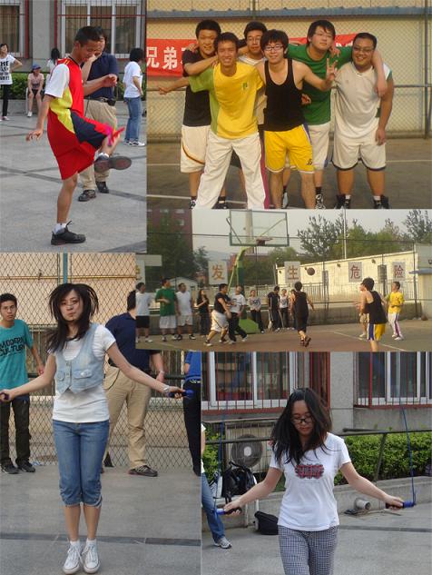 2009年5月9日17时,绳毽团体赛在轮滑场如期举行该项比赛采取寝室全体成员分别限时跳绳、踢毽子,并以总数为准进行排名的竞赛方式。在跳绳与踢毽子的过程中,各个寝室成员们都在尽自己最大努力为寝室争取集体荣誉。其中,一名男同学凭借其快速的节奏、协调的动作取得了一分钟跳绳212下的好成绩,在场所有同学都为他鼓掌。当然也有一些同学成绩不太理想,但他们的参赛热情并没有因此而消退,同时认为寝室集体出赛就是幸福。当被问及参赛目的时,一名同学答道:“平时时间较紧,体育活动少,这次比赛是个与寝室同学一起活动的好机会。” 通过此次活动,同学们不仅感受了竞技的乐趣,而且享受到了相互鼓励、相互配合的喜悦。