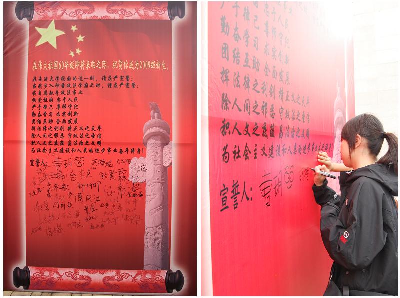 2009级新生牢记作为一名法大人应有的品质,让他们在真正成为法大人的那一刻起就明白“经国纬政,法泽天下”的责任与使命。