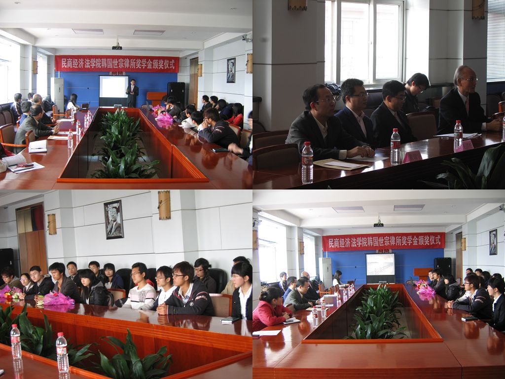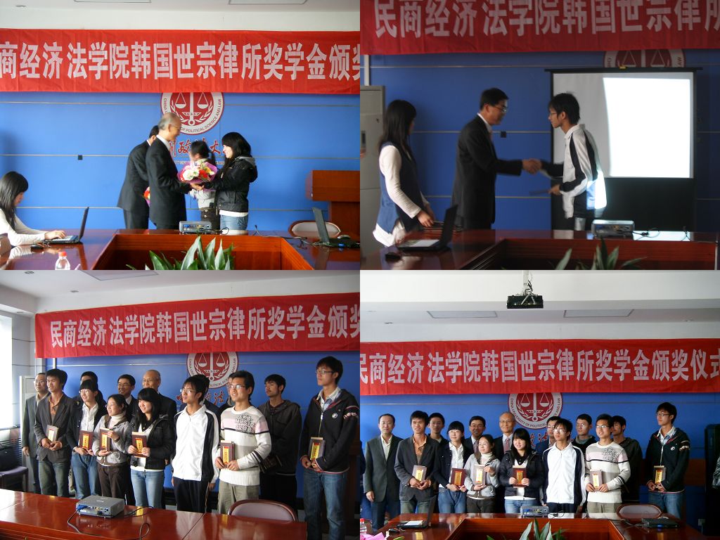 分党委副书记兼副院长王洪松,世宗律师事务所中国本部长柳昌宗,首席代表崔容远律师及06级李嵩老师,07级代丽丹教师代表出席了颁奖仪式。