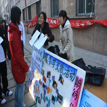 分团委组织,学委会负责具体筹办的“走进阳光”系列活动实践部分之棚鹰小学支教活动正式启动。随着支教宣传工作的开始,此次支教活动也正式全面展开。