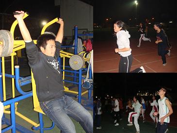 校新生运动会三连冠的辉煌,院分党委高度重视新生系列活动的开展和筹备,院分团委、学生会结合新生实际,对赛前训练活动制定了相应的计划。从9月25号院新生运动会选拔赛开始,在工作人员的组织下,新生运动员成立训练小组,每天由带队队长指导组织训练。统一安排时间,于早间,下午5点30至6点30和晚上9点30至10点30进行大强度的集训。确保运动员每人每天至少一个小时以上的运动量。值得一提的是很多运动员十一放假期间还坚持训练。