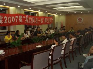 “我们同在一起”师生座谈会是以促进师生交流、实现沟通 “零距离”,增强团体感为目的,以推动民商07级各方面建设为宗旨的系列活动 。据悉,2007级还将在以后继续针对不同的群体不同的主题与同学们展开交流。