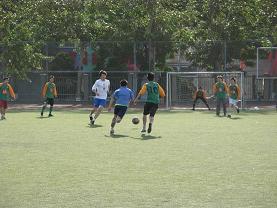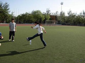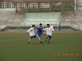 在旭日柔和的照耀下。法大足球场显得格外充满生机和活力。虽然毕业在即,同学们都很忙碌,但04级的同学们对年级自己组织的联赛仍然保持着一如既往的积极性。他们都早早的来到球场,随着比赛的开始,兴奋和投入的表情完全让我们忘记毕业的忧伤,更多的恰是他们对法大的深情和不舍。传球、配合、射门,队员们恣意的挥洒着汗水,而场下,默契的加油声助威声伴随着每次进攻和防守,与场上运动员们交相呼应。