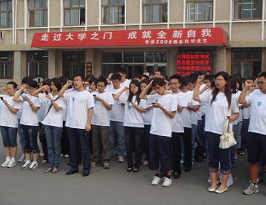 清晨6:30,伴随国歌的激昂响起,在三百多名佩戴院徽列队站立的毕业生同学的注目下,五星红旗再一次徐徐升起。庄严肃穆的升国旗仪式达到了本次爱国教育活动的高潮。