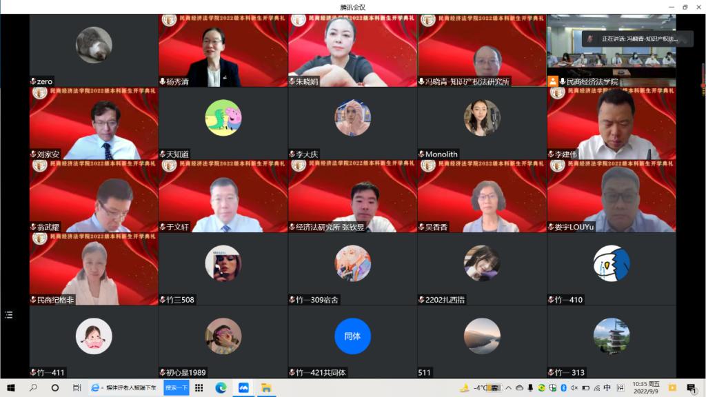 2022级本科生开学典礼通过线上线下的方式举行。学院党委书记杨秀清、副院长刘继峰、副院长朱晓娟、副院长于文轩、副院长戴孟勇,各教学研究所、相关科室负责人、教师代表吴香香、2022级本科生辅导员及全体2022级本科生在线上参加开学典礼,典礼由党委副书记王彤主持。教师代表吴香香教授分享了法学学习的方法,勉励同学们未来四年励志勤学,刻苦磨练。在校生代表、2019级本科生杨雁舒以及新生代表、2022级本科生崔哲嘉分别发言。