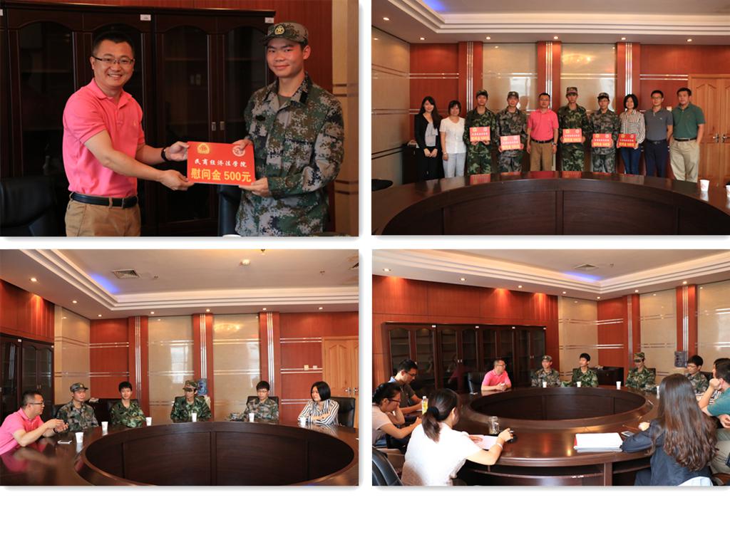 在昌平校区学生活动中心慰问2015年退役复学和应征入伍学生。学院分党委副书记兼副院长王洪松,各年级辅导员,退役复学的2009级本科生韩思琦,应征入伍的2011级本科生姜联政、王冠群、哈尔赤、张任参加本次活动。此次“迎老兵 送新兵”活动旨在表达学院全体师生对于退役复学的学生的欢迎和携笔从戎的应征入伍学生深深的祝福。