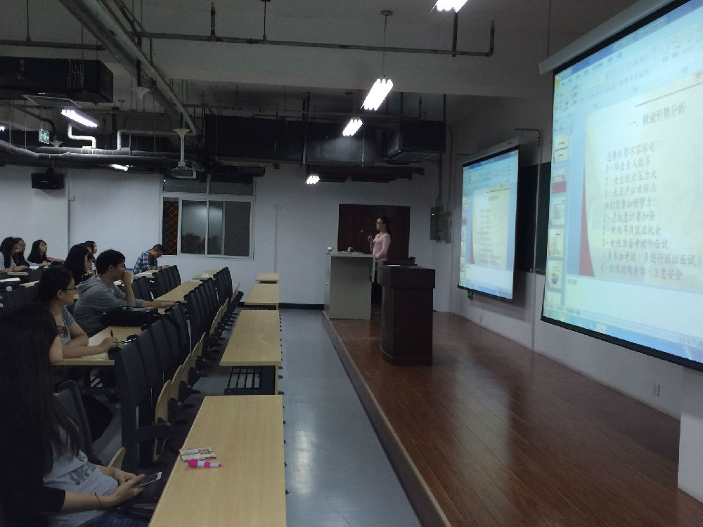 “2016届硕士毕业生就业形势分析暨就业动员大会”。辅导员蒋龙琴老师和2016届全体毕业生参加了会议。