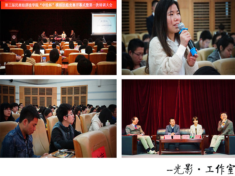 在学术报告厅举办“中伦杯”模拟法庭竞赛开幕式暨第一次培训大会。我校教授冯晓青,我校校友、北京市第一中级人民法院刘正韬法官,我校校友、北京市中伦金通律师事务所合伙人康铧律师以及中伦律师事务所常毅律师出席开幕式并对参赛同学进行第一次培训。