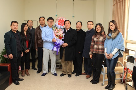 分党委副书记王洪松一行前往医院,代表学校和学院表达了对他的关心慰问。