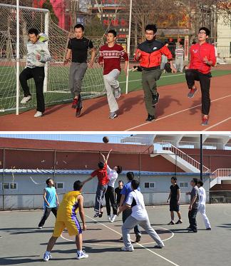 每天五点,暮色将至,总有这么一群人在操场上开始了他们的征程,他们并非运动队员,他们只是民商的普通同学,但是他们和运动队的健儿们拥有一样的运动热情和激扬的青春梦想。伴着下课的铃声,他们三五成群的来到操场上,放下书包和一天的疲惫。短暂的热身后,操场上开始增添了许多活跃的身影:虽然不比运动健儿们的速度和耐力,可是他们依旧驰骋在自己的跑道上,努力诠释着青春和自我的含义。红色的民商队伍中因此增添了许多白色、黄色和蓝色的身影…他们与运动队的健儿们合为一道洪流,奔腾在热闹的操场上。不时跑过的运动队健儿们会放慢脚步,和他们熟识的伙伴开个无伤大雅的玩笑或者大声鼓励一下筋疲力尽的同伴,欢笑的声音像水滴落在喧嚣的海洋中,淹没在夕阳的温柔的余晖中。