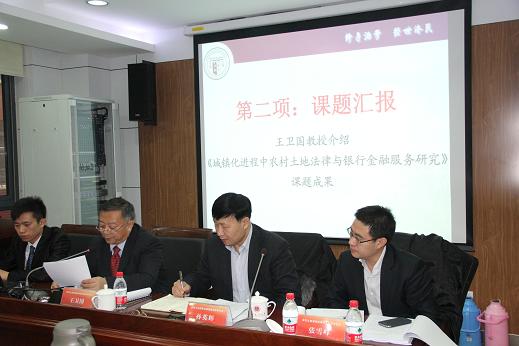 大会第二项内容是由王卫国院长向大会介绍了“城镇化进程中农村土地法律与银行金融服务研究”课题的初步成果。在成果介绍中,王院长深入介绍我国土地制度的沿革,剖析其存在的问题,理性分析改革途径和利弊,重点突出介绍改革困难和挑战。