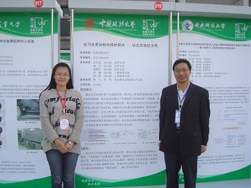 在参加完16日上午的开幕式后,杨飞和谷佳琛在项目展示现场接待了前来观看展板的师生,并与武汉大学、华东政法大学、河北工业大学等学校负责学生工作的教师就学生实习时的权益保护等问题进行了深入的交流的同时也观看学习了其他展示项目。16日下午,杨飞还参加了高校创新创业训练计划工作研讨会,与其他高校的教师进行了分组交流。