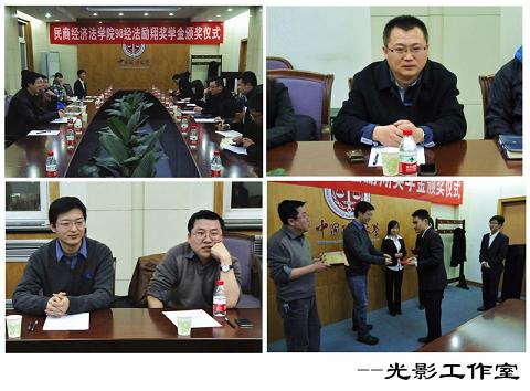 成立以来的第一届毕业生,这些与众不同的特点加上严格的评审程序必将激励着学院的同学们拼搏向上。接下来,评选小组教师代表汇报了本次奖学金的评审情况,其内容包括评选依据、评审程序、领导机构以及本学院获奖候选人基本情况介绍。此次98经法励翔奖学金的获奖名单是,2011级刘庸臣,2011级赵晓虎,2011级马娟,2011级张旗,2011级孙晓明,2010级宋雯,2010级曾娅平,2010级张琳,2010级丁欢,2010级洛桑贡布。