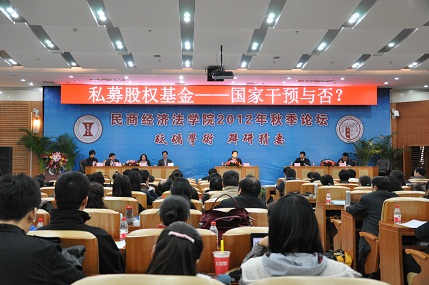 论坛伊始,薛克鹏教授首先发表看法,他的观点是赞同国家应当干预私募股权,从社会稳定、股市安全和实体经济发展三个方面加以论证。随后,吴日焕教授从对赌协议的角度为我们提供了一个新的思路。李爱军教授阐明了“对赌协议”的内容和意义。马更新教授以具体的案例分析国家对私募股权基金的影响。在之后的交流中,易军老师和管晓峰老师发表了自己的看法。