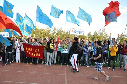 绿茵场上的运动健儿们挥洒汗水,用自己的青春续写民商王朝的辉煌。赛场外,观众们一次又一次的欢呼和呐喊更是为这场运动会添上了浓墨重彩的一笔。“民商,加油!”、“民商民商,天下无双;民商民商,我为你狂!”每当有运动员经过看台前,现场的观众都用最整齐响亮的口号为他们加油助威,用一次次的呐喊为民商辉煌的铸就贡献自己一份力量。