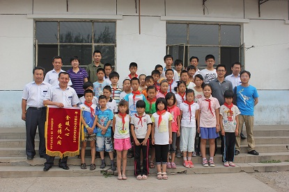 2012届毕业生爱心捐赠活动在昌平北郊棚鹰小学顺利举行,毕业生辅导员姚国强、毕业生代表和饮食服务中心主任张伸等十几名师生参加交接仪式。