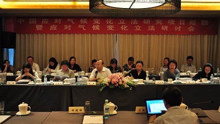 林灿铃、曹明德教授用高度浓缩的精炼语言做了“国外应对气候变化法所涉及重点问题识别和研究”项目执行报告以及“中国应对气候变化内容分析项目执行报告。与会领导和专家评价两位教授的研究汇报“内容全面、成果丰硕、概括得当、价值重要”、“立场正确、方法得当、成果突出、实在难得”。研讨会中,众多专家对应对气候变化立法表达了各自的独到见解并进行了激烈的讨论,对中国应对气候变化立法进程起到积极的推动作用。最后,孙桢副巡视员做了精彩的总结,他认为,这次会议是一个很好的项目总结会和专家研讨会,我们去年热启动、今年是再启动,因为这是阶段性的成果。祝贺两个课题组,做出非常优秀的成果,我们司在这个过程中参与指导和协调,这个成果也给我们脸上贴了光,所以我们觉得很自豪。我自己对这个成果感觉到很清晰、很清洁,报告文风比较干净。我们下一步立法工作会更加紧锣密鼓再开展,我们继续秉承开放、透明的态度做好这个工作。希望大家继续关注我们工作、也参与我们工作。会议在热烈的掌声中圆满结束。
