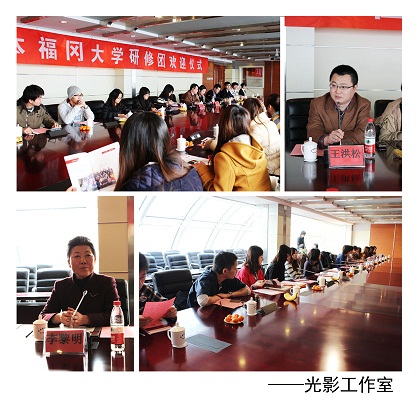 王洪松代表学院对远道而来的日本福冈大学研修团师生一行表示热烈欢迎,并介绍了学院基本情况及访问团的学习计划和见习活动内容,表示一定努力做好保障工作,给日本学生留下美好回忆。