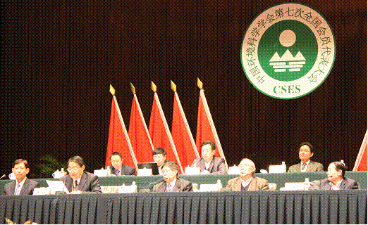王灿发教授在中国环境科学学会第七次全国会员代表大会主席台上。后排左一是王灿发教授。