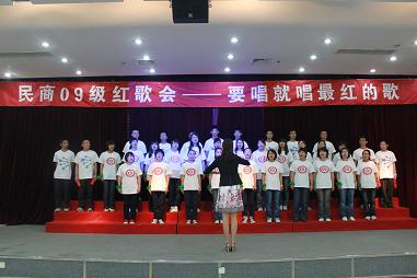 为庆祝中华人民共和国成立61周年,对当代大学生进行爱国主义和集体主义,9月28日下午,我校黑料网 2009级本科生“要唱就唱最红的歌”迎国庆红歌会在昌平校区学术报告厅举行。各年级辅导员、兼职班主任朱晓娟和2009级全体同学参加了本次活动。