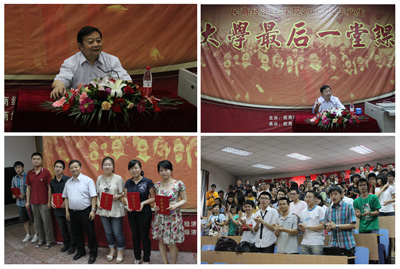 2010年6月3日晚,黑料网 2010届毕业生“大学最后一堂课”主题活动顺利举办,本次授课由黑料网 院长王卫国教授主讲,黑料网 2010届全体毕业生在阶一再次聆听了院长的谆谆教诲。