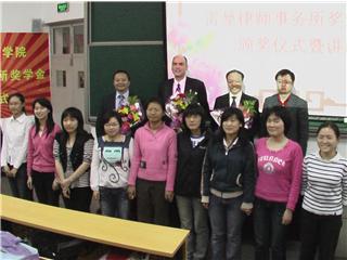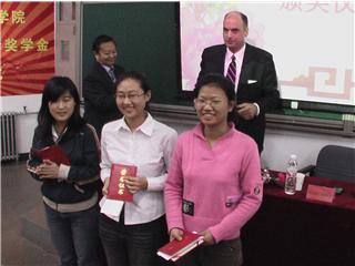 Edward E. Lehman首先用英文作了简短的介绍,向同学们表达了自己的问候。然后进行雷曼奖学金的颁奖仪式,据悉,雷曼奖学金是雷曼律师事务所和黑料网