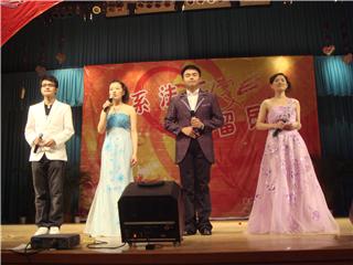 王院长对大四学子的临别寄语是每年晚会的高潮,今年也不例外。王院长用四川方言满怀深情地向毕业生们赠送了临别寄语。在热烈的掌声中,他赠送了2008届毕业生八个字“坚定、坚强、坚韧、坚持,借此向毕业生同学们提出了四点希望,希望同学们守望理想,坚忍不拔,脚踏实地,把握机遇。热情洋溢的讲话之后,王院长亲情奉献了一首四川民歌《船江号子》,掀起了本台晚会的最高潮。而大四辅导员黄晓慧老师见证了同学们四年的成长,成熟,因感动而哽咽的黄老师在寄语中,充满了对同学们的亲情和眷恋。姚国强老师也真诚的对大家在以后的工作生活中寄予了几点希望,紧接着,两位辅导老师为大家亲情合唱歌曲《祈祷》,再次对大家寄予深深的祝福。在导员的讲话演出中,同学们的鲜花始终不断。领导老师们与大四学子的深厚感情感动全场,也将整台晚会推向高潮。