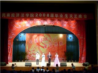 历届运动会铸造的民商王朝,而08届的学子们正是民商四年体育王朝的见证者,心情的激动油然可之,同时也表达了对民商体育美好将来的祝愿。抗震救灾歌曲《直到永远》的演唱,寄予了对四川人们深深的祈祷和真诚的祝福,感动了在场的所有人,同时也是在法大学生对国家时事关心的完美体现.在晚会后半部分,播放了由学生会彩虹传媒中心精心制作的视频,在柔美的音乐中,深情回顾了04级学子共同走过的四年美好时光。往日情景一幕幕回映,同学们深切感受到四载教诲,师恩难忘,四年同窗,情意难舍。
