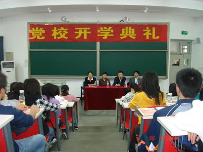 分党委副书记兼副院长王洪松讲话,他首先祝贺学员们能够进行党课的学习,接着联系奥运,希望大家继续发扬志愿者的精神,以认真负责地态度完成本次党课的学习。他特别强调,在十七届三中全会召开的背景下,更要理论联系实际,并将党课与个人成长成才相结合。随后,他又结合党课具体学习内容,对大家提出希望和要求,鼓励大家不仅在思想上,也要在行动上向党组织靠拢。